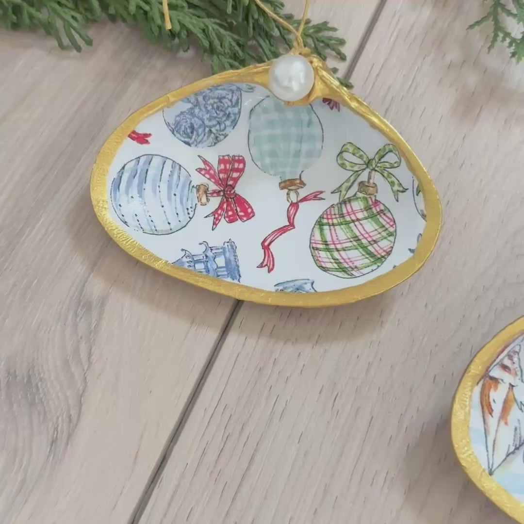 Make these gilded shells an elegant touch to your Christmas tree this holiday! Each shell is hand crafted with a decoupage technique and hand gilded around the edge. They are a unique gift and perfect for a host or hostess.
