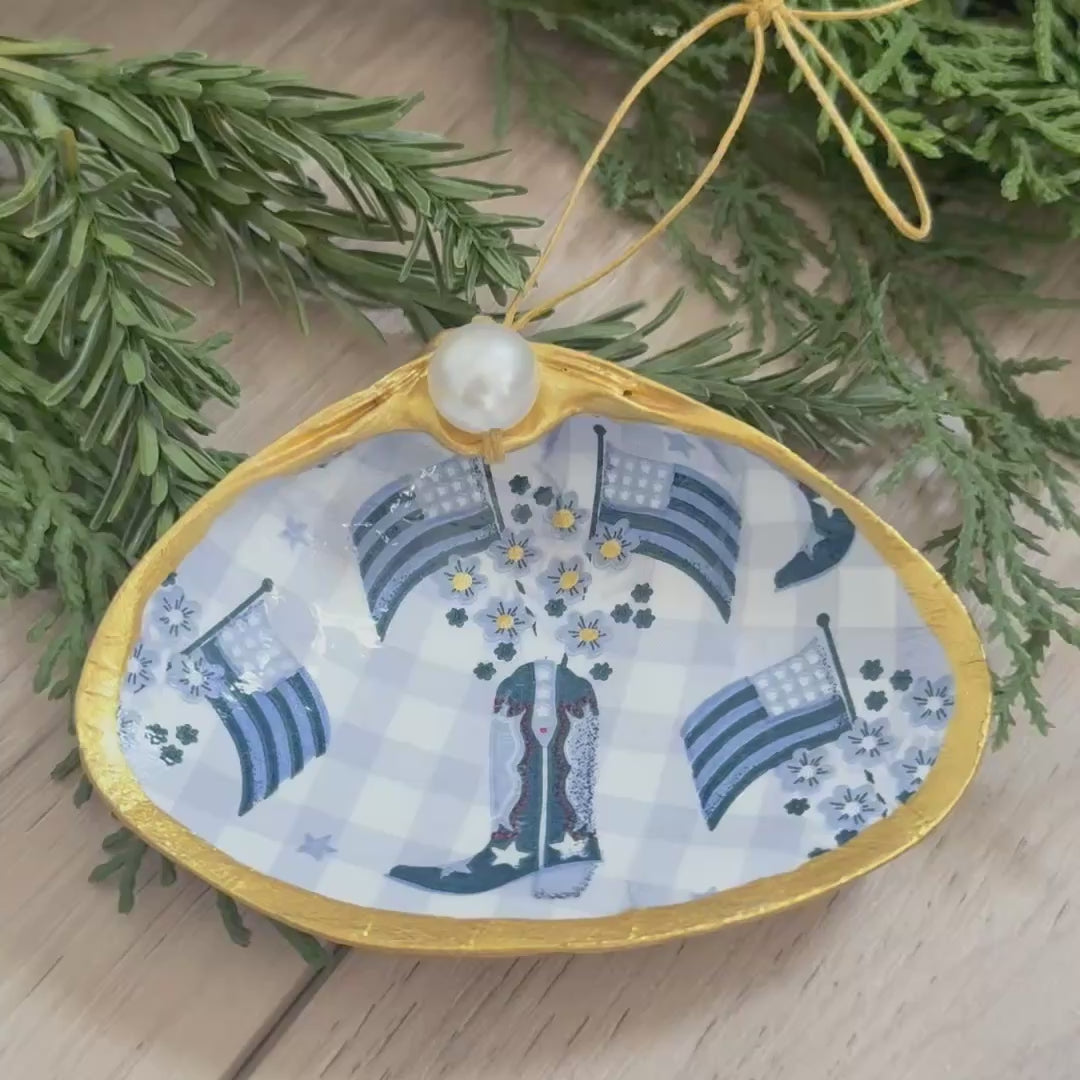 Make these gilded shells an elegant touch to your Christmas tree this holiday! Each shell is hand crafted with a decoupage technique and hand gilded around the edge. They are a unique gift and perfect for a host or hostess.