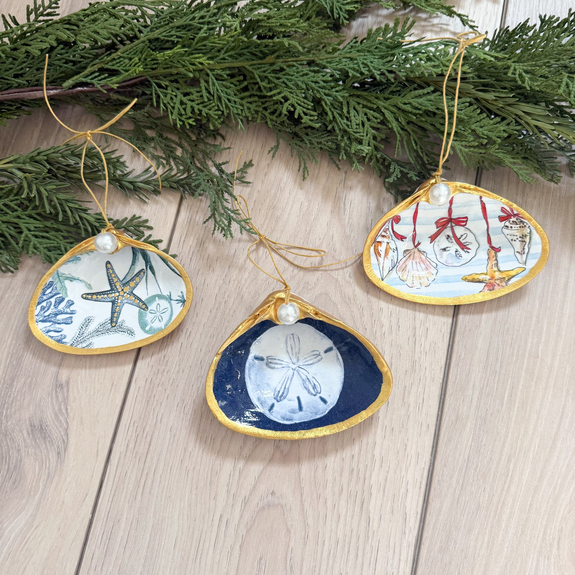 Make these gilded shells an elegant touch to your Christmas tree this holiday! Each shell is hand crafted with a decoupage technique and hand gilded around the edge. They are a unique gift and perfect for a host or hostess.